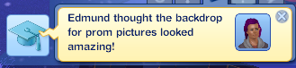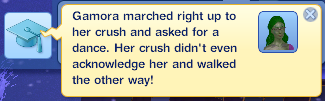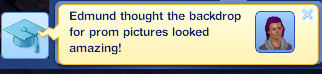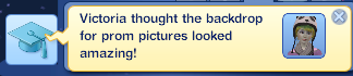 I wasn’t quite sure how to present the story context for the rather catastrophic prom. Gamora DID have a mood swing that day with all kinds of wicked wishes, only half of which I was able to grant between the time school let out and prom started. Really, for an Evil sim, a mood swing should include wishes to be nice to people….